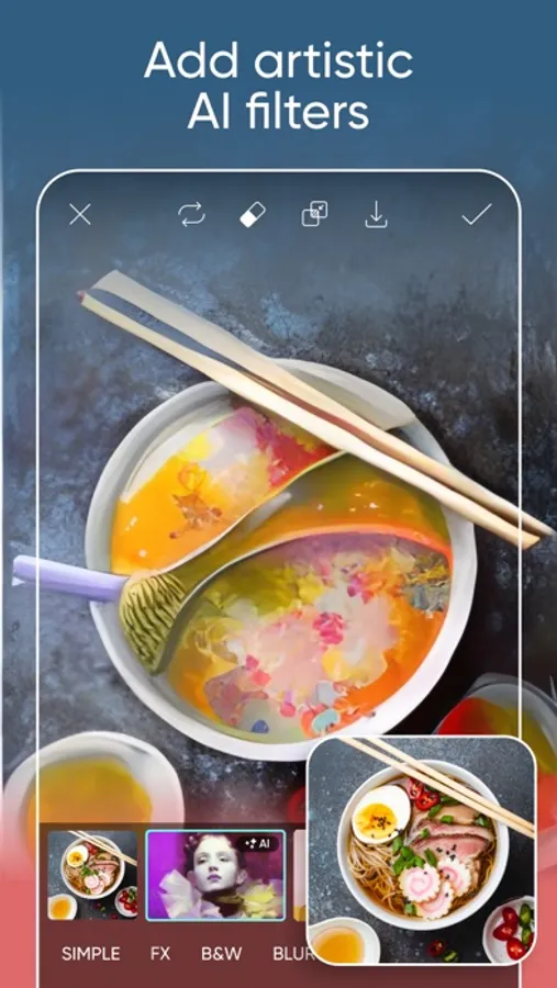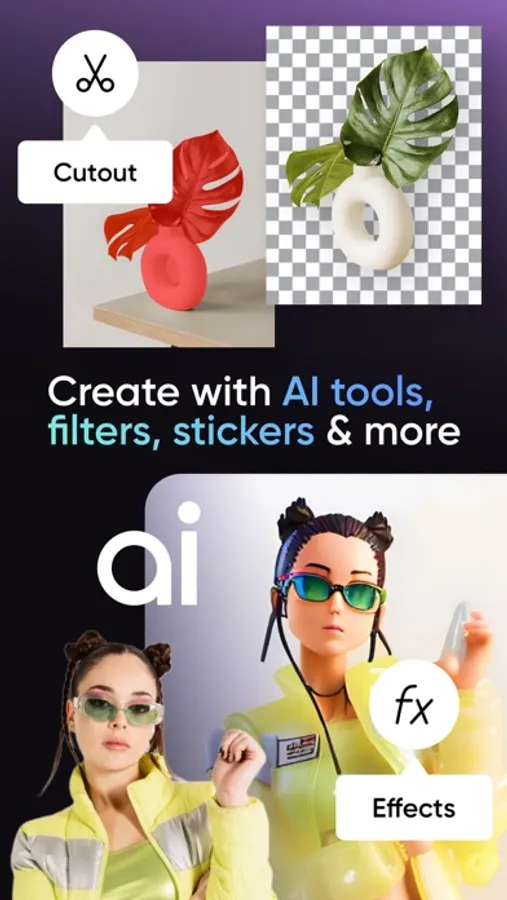 Join the Picsart community of over 150 million creators around the world. Bring your creativity to life with a full suite of AI powered editing features, quickly remove and swap backgrounds for the perfect product shots, design flyers or social media posts with templates, create photo collages of your favorite memories, choose from hundreds of stylized photo filters, and more. Picsart is your go-to, all-in-one AI assisted editor with all the tools you need to give your content a personal flair and make it stand out.
