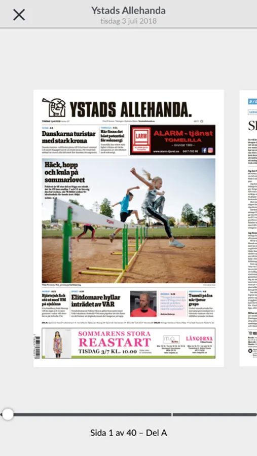 Du kan välja att läsa artiklarna i ett tidningsläge där du bläddrar bland sidorna och zoomar in på sidan. Ett annat alternativ är att klicka på en artikel – då öppnas den upp i ett läsvänligt fönster tillsammans med bilderna som hör till artikeln.