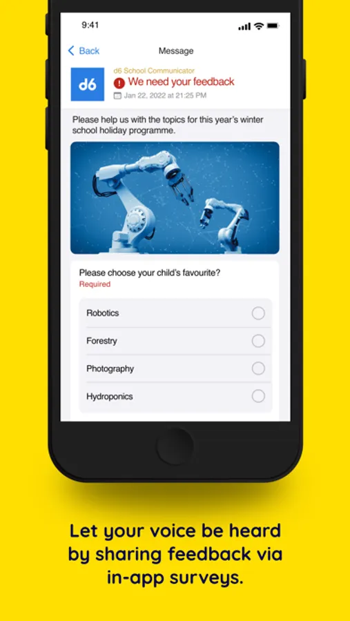 The d6 School Communicator includes all the information an engaged parent would need at the touch of a button.