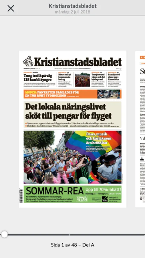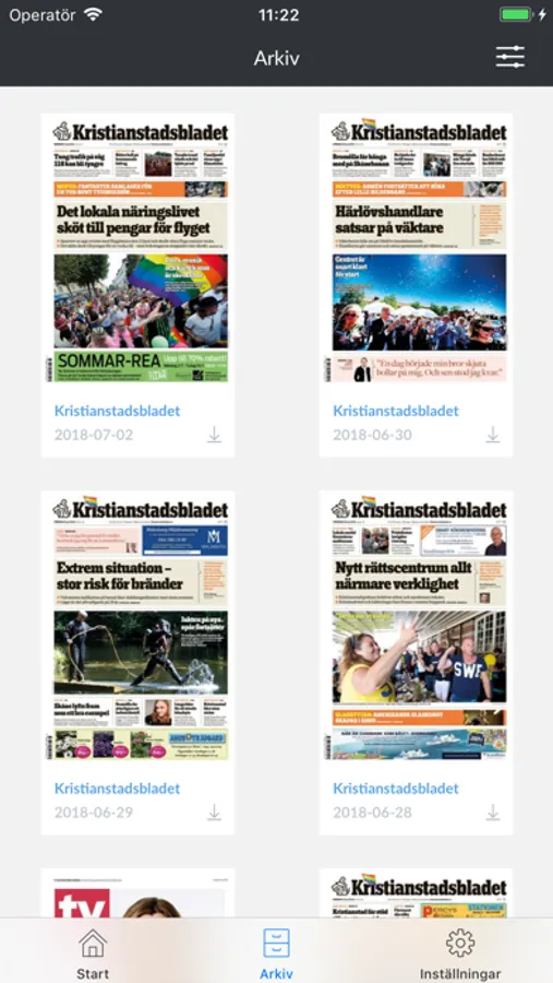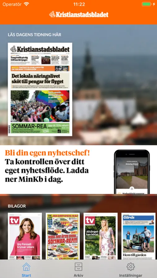 Välkommen att läsa Kristianstadsbladet i din iPad eller iPhone. Här får du tillgång till tidningens ordinarie delar och alla bilagor. Du kan välja att läsa artiklarna i ett tidningsläge där du bläddrar bland sidorna och zoomar in på sidan. Ett annat alternativ är att klicka på en artikel – då öppnas den upp i ett läsvänligt fönster tillsammans med bilderna som hör till artikeln.