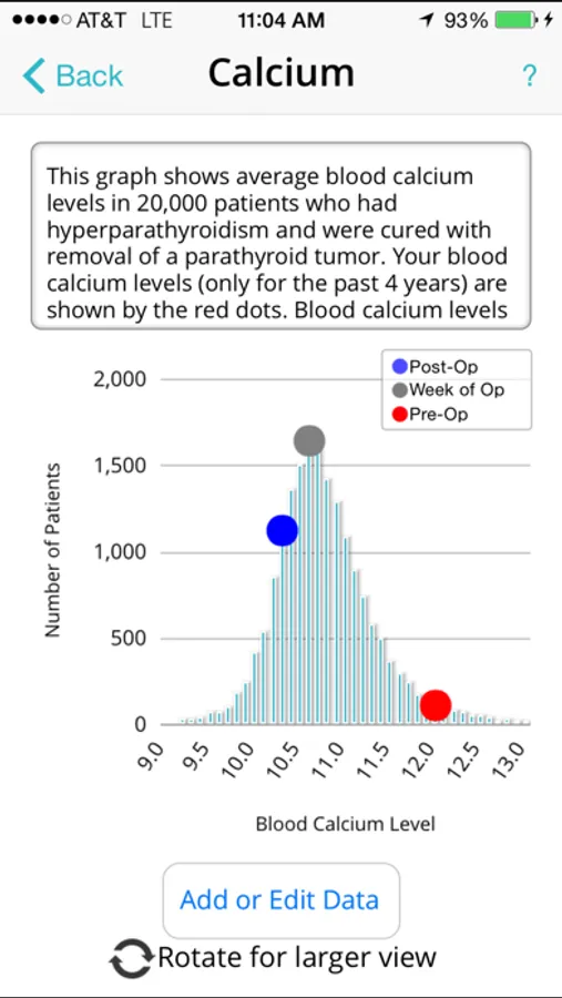 You start by entering your test results for calcium, parathyroid hormone, and vitamin D. Then we look at your bone density (osteoporosis levels). CalciumPro will analyze and graph your tests making them easy to understand. It will let you know the status of your parathyroid glands and your chance of having hyperparathyroidism. Suggested next steps are given. Tracking tools will show your calcium and vitamin D levels over time, and will show if your bones are losing density (worsening osteoporosis), or gaining bone density. There are important learning tools on every page, and an extensive video and reading library at the end. The app will provide guidance about talking to your physician regarding the possible need for surgery and other important steps.