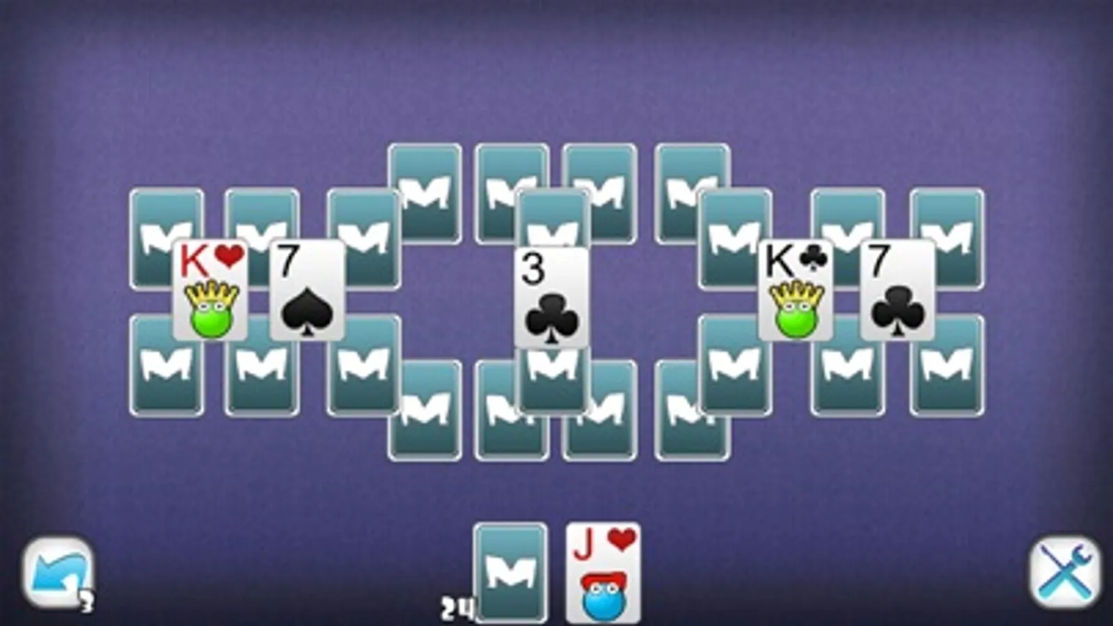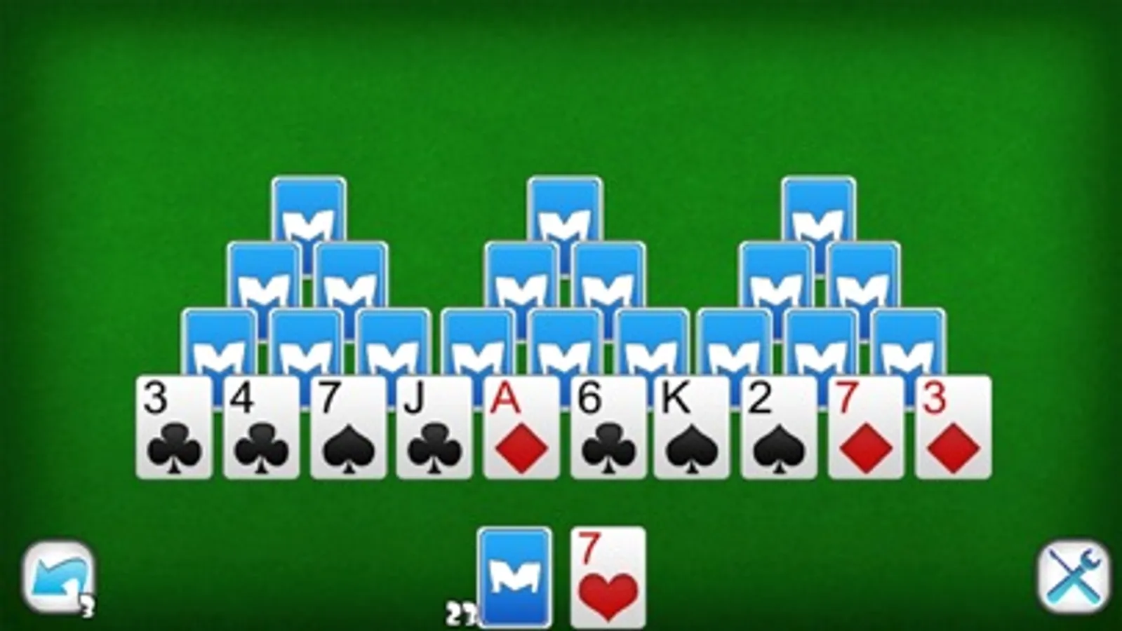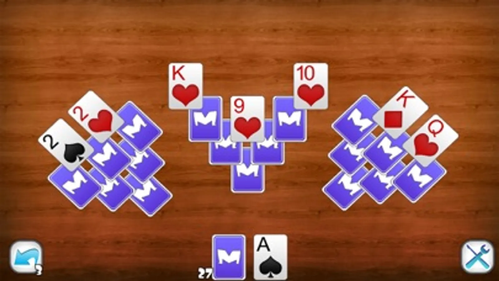 TriPeaks Solitaire (also known as Three Peaks, Tri Towers ou Triple Peaks) is one of the many Solitaire variations. In this configuration, the board has three various pyramid towers. You have to strategically move the cards from each tower to win the game.