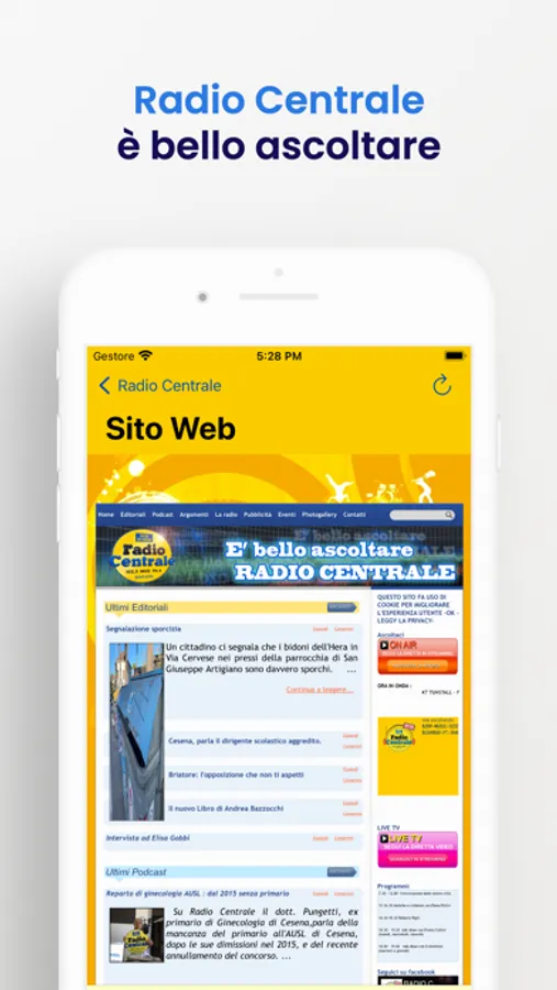 Potrai ascoltare la musica e le notizie di Radio Centrale, visitare il sito web e le nostre notizie.
