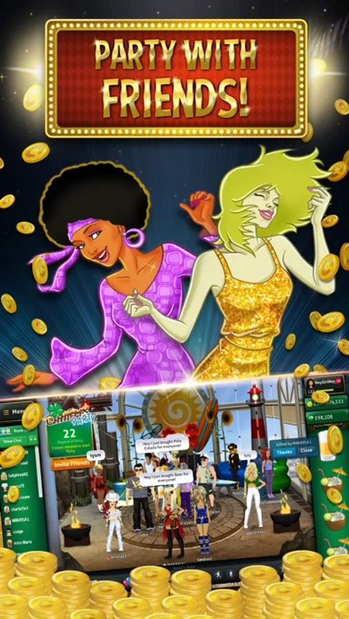 • Win bonus coins with Charms - Best payouts! • Gift and receive Food and Drink Charms from friends.