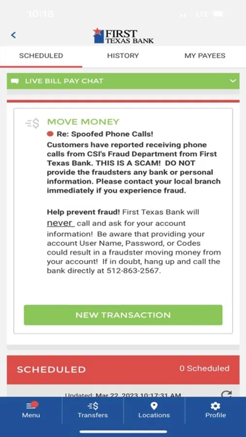 Need assistance? Call our Customer Service Department at 1-512-863-2567 if you have any questions about the First Texas Bank Mobile App.