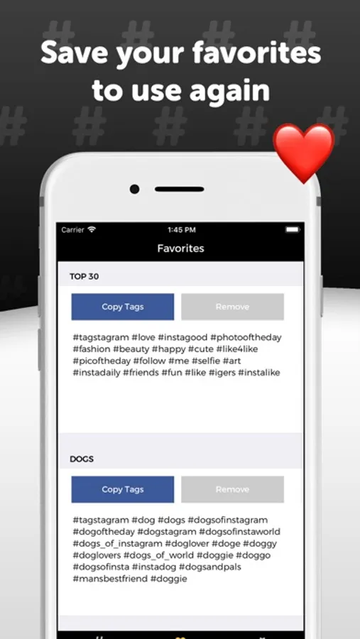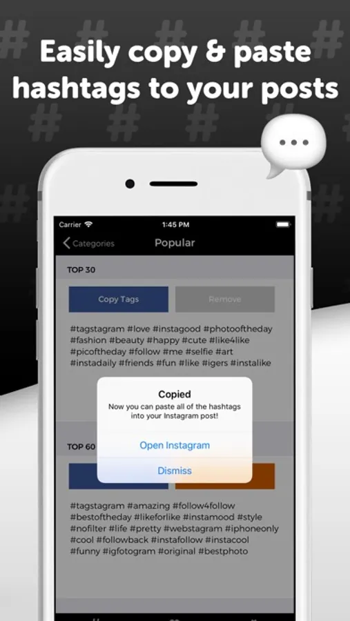 Quickly copy and paste the top groups of hashtags!