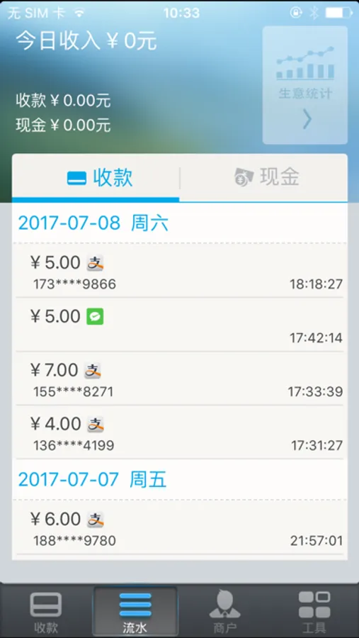 3.生意统计:营业额有多少?QPOS帮您统计,按月统计金额和笔数,清楚明了。