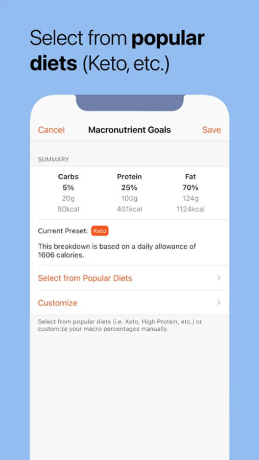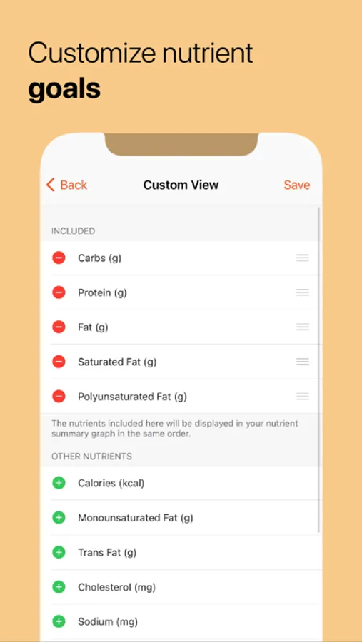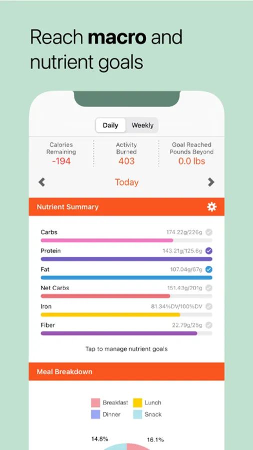 • Track your macros and micros, and set nutrient goals.