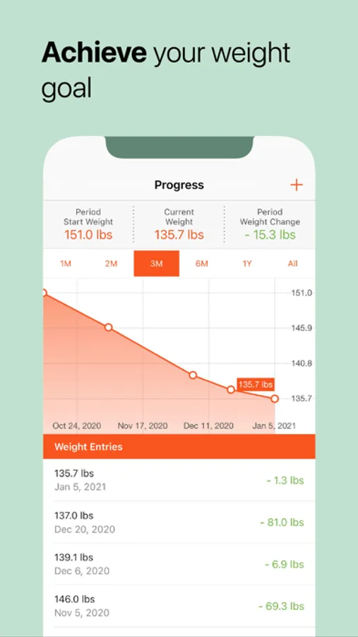 • Track your weight loss or gains.