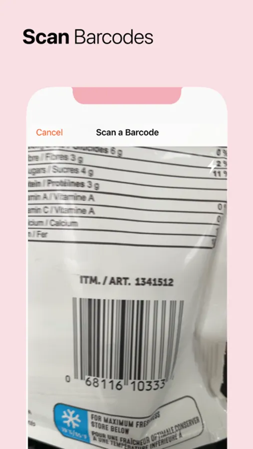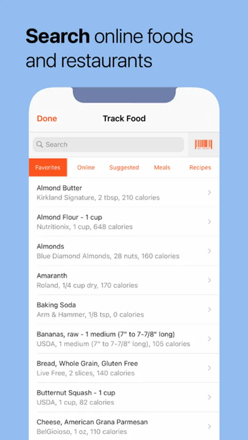• Scan barcodes or search our database to quickly track foods you’ve eaten.