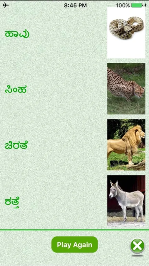 This App helps new language learner (kids to adult) to learn Kannada words in easiest way. Builds vocabulary and pronunciation of basic words in categories like Animals, Birds, Body Parts, Vegetables, Fruits, Colors, Shapes, Numbers, Calendar and Alphabet with word game. Useful for Babies, pre school or kindergarten kids and language learners of any age group adult or children. Has word Games to practice the learning.