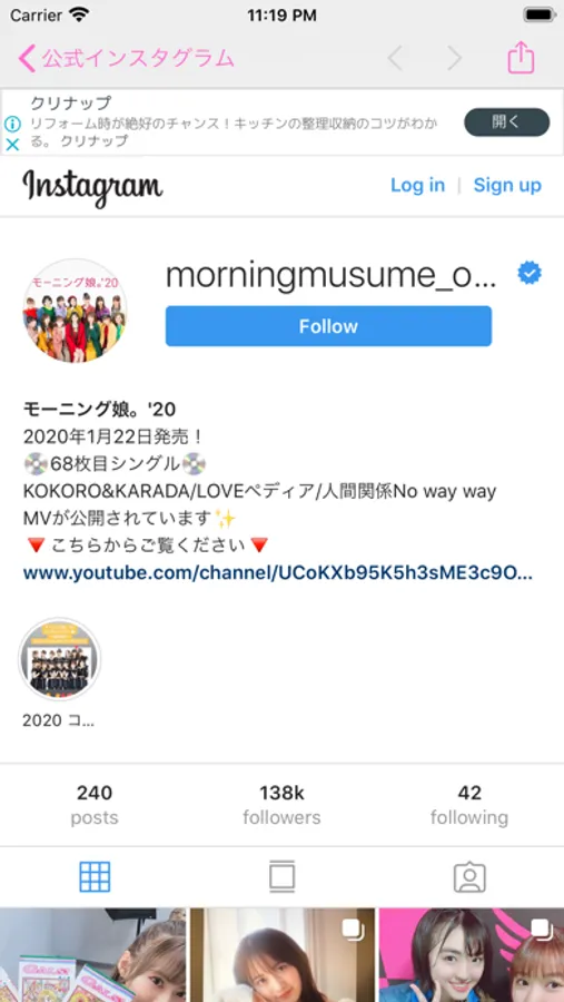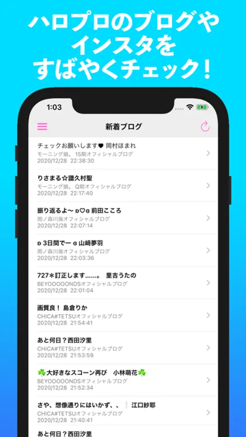 当アプリは、ハロプロ関連のブログやインスタグラムなどをまとめて閲覧することができるアプリです。