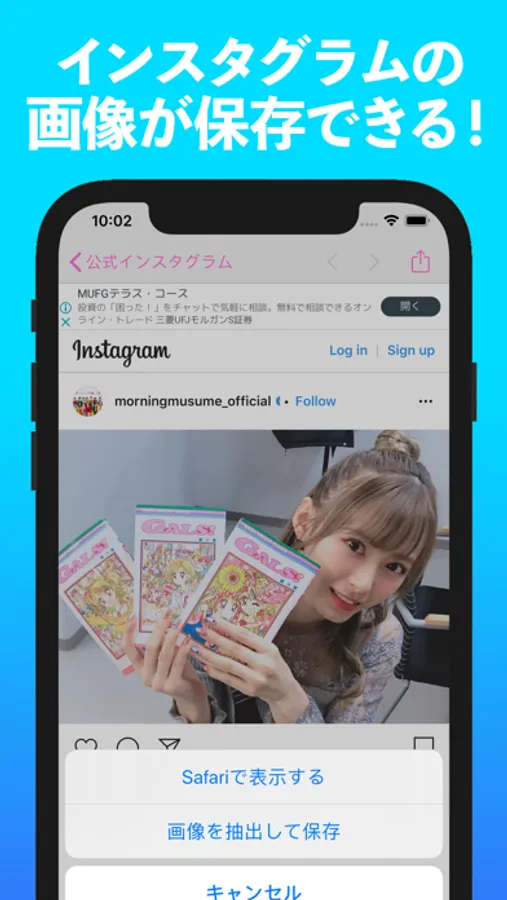 通常のブラウザでは、アメブロやインスタグラムにアップされている画像は保存できませんが、このアプリでは簡単に保存できます。