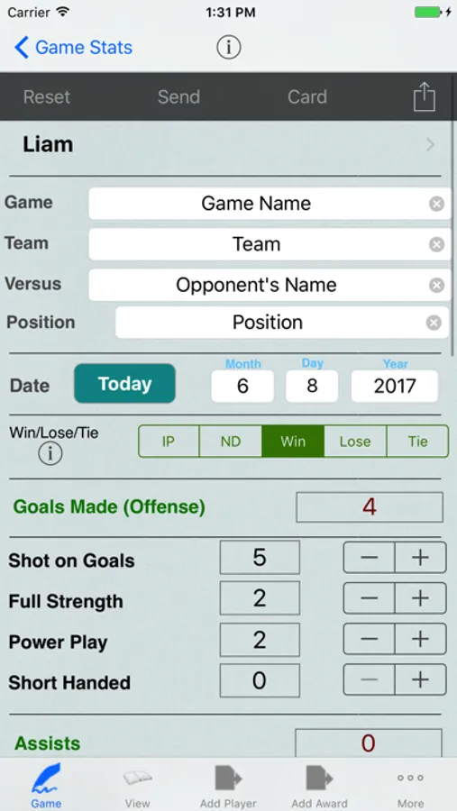 The Hockey Stats + Player Tracking app is an easy to use app to store and track player data for later retrieval. Unlimited database of information available. Sortable by game name, player, percentage, and date.