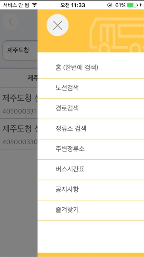 제주도내 급행, 간선, 지선, 심야, 관광지 순환버스의 운행정보를 실시간 수집하여 버스 이용자에게 현재 버스위치와 정류소 도착 예정 시간, 경로 검색 기능 등을 제공합니다.