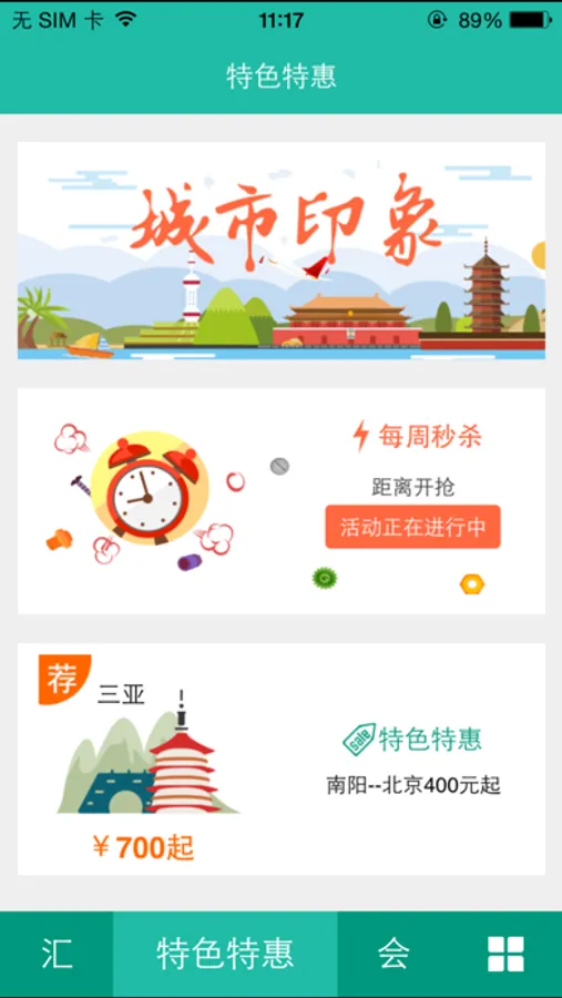 海航会推出城市印象系列自由行产品,每款产品皆特价精品,同时精选凯撒旅游的旅游线路,以优惠价格提供给用户。