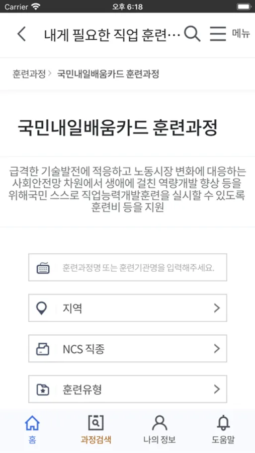 - 고용노동부 지원 전체 교육훈련 과정 검색(지역별, 관심분야별)