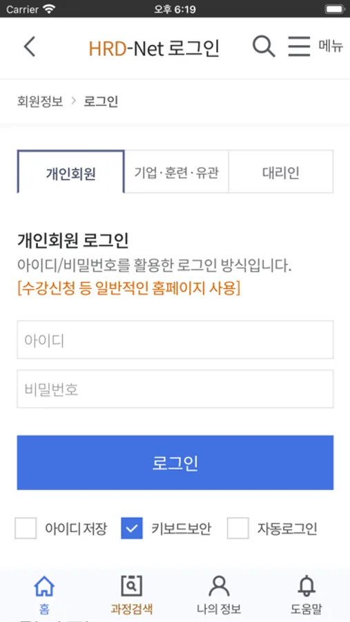 훈련과정, 훈련기관, 훈련비 등 고용노동부에서 지원하는 다양한 직업능력개발사업에 대한 정보를 대한민국 대표 직업능력개발 포털 HRD-Net 모바일 앱에서 확인하실 수 있습니다.