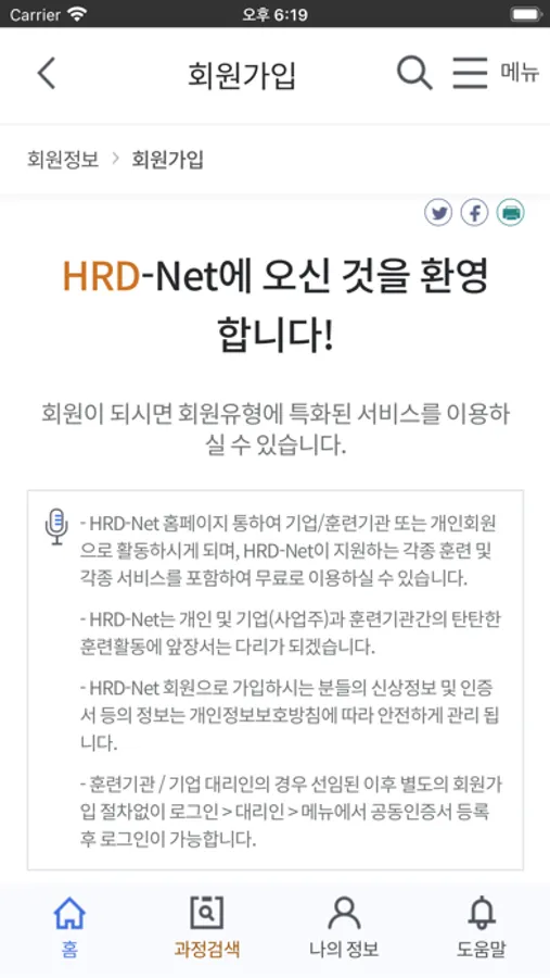 - 선택적 접근권한은 필요한 시점에 동의받고 있으며, 동의하지 않아도 고용노동부 HRD-Net 및 출결관리 앱을 이용하실 수 있습니다.