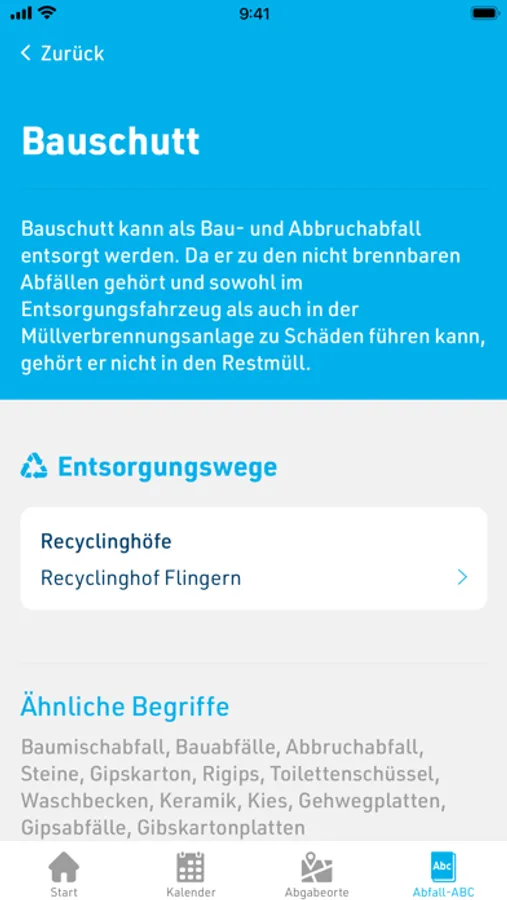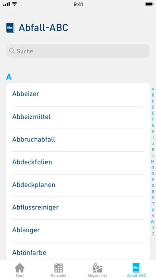 Ein Abfall-ABC bietet allen Nutzern Hilfestellung beim Auffinden der richtigen Entsorgungsmöglichkeiten.