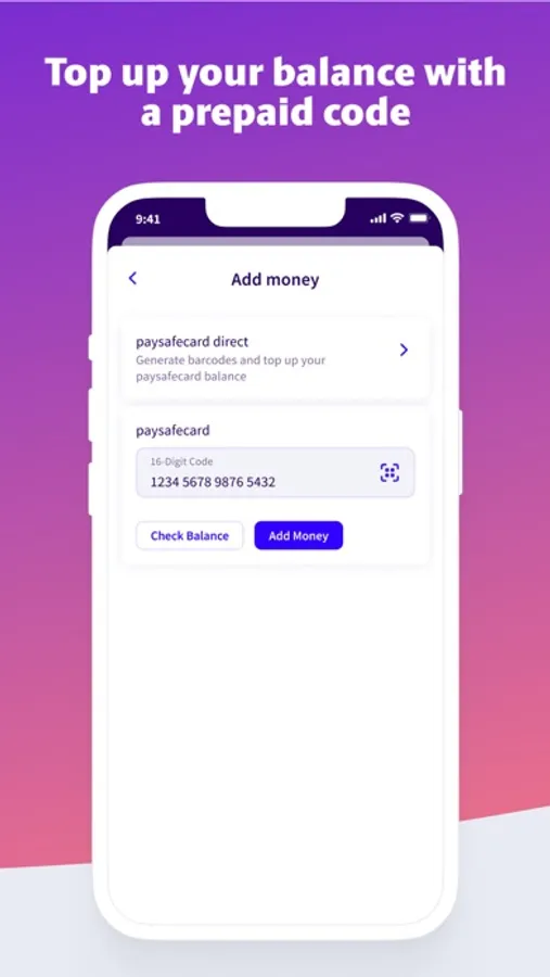 - Scan2Topup: Scan the QR code on your paysafecard to top up your account faster