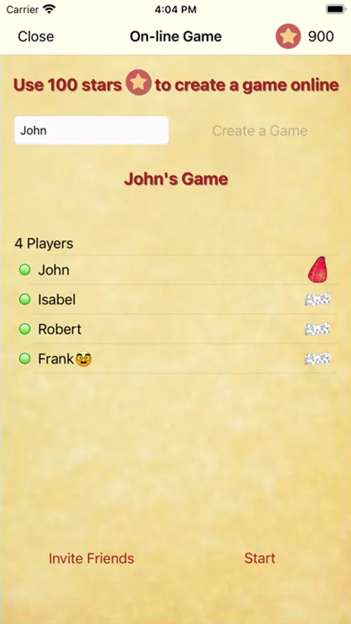 To create an online bingo you need 100 stars, to join an online bingo you need 10 stars.