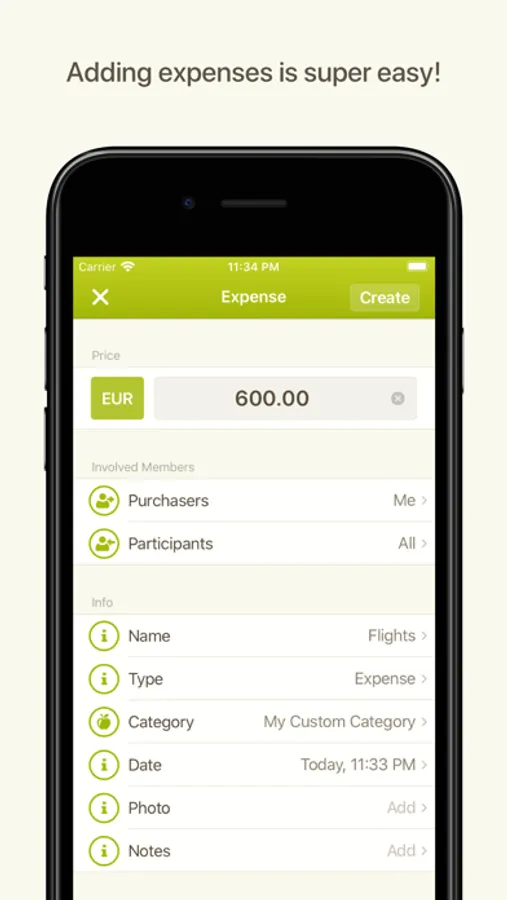 - Categorize your expenses (custom categories available)