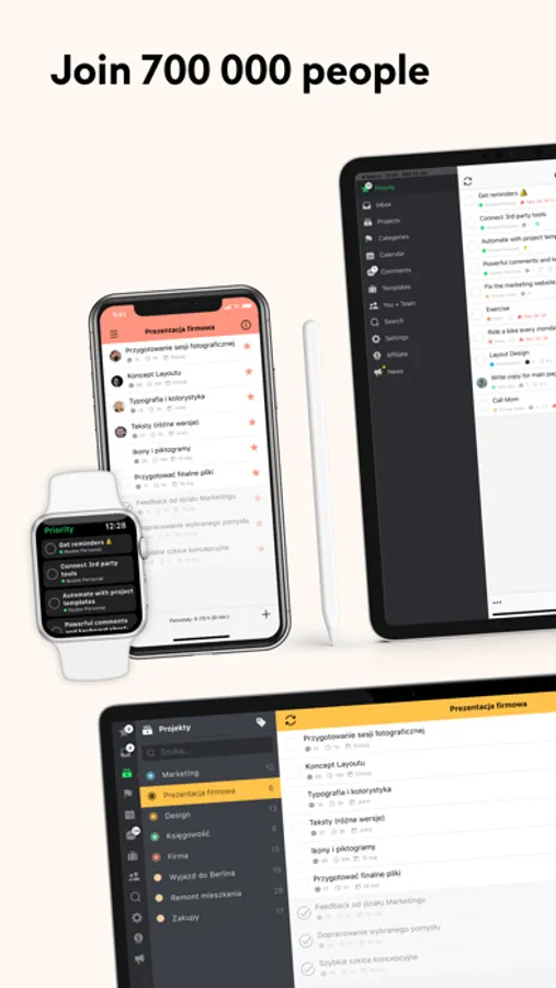 • Access your tasks from anywhere – install Nozbe on all your devices, including Apple Watch