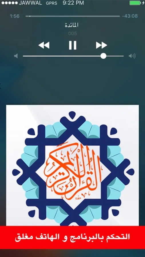 ٣- و من المميزات المهمة جدا انه تستطيع الاستماع للقران حتى بعد و ضع الهاتف في حالة الاغلاق مما يحافظ على الجهاز و بطاريته
