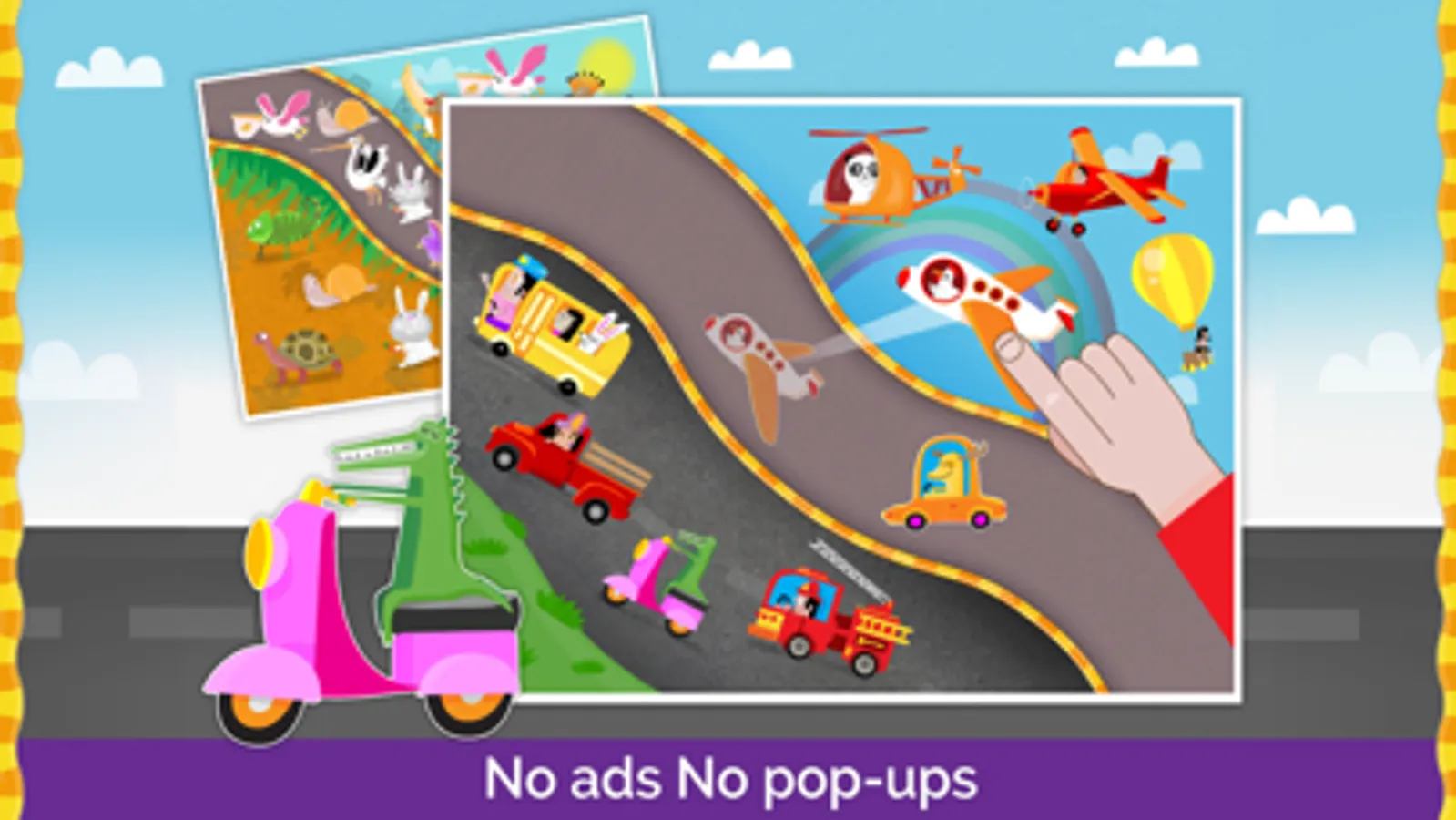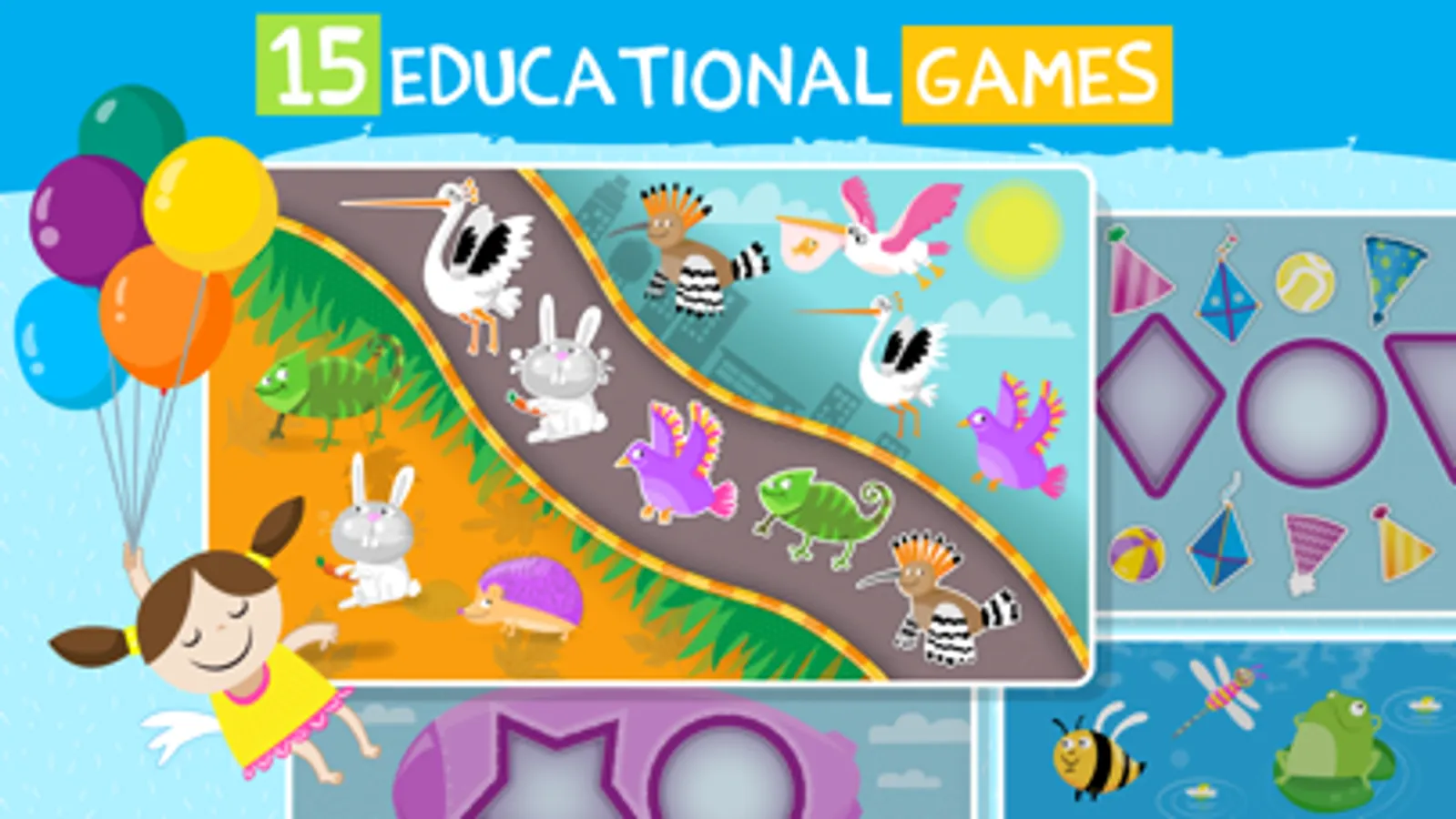The game consists of 15 beautiful environments each focused on a set of basic concepts from the child's world such as shapes, colors, seasons, animals and vehicles.