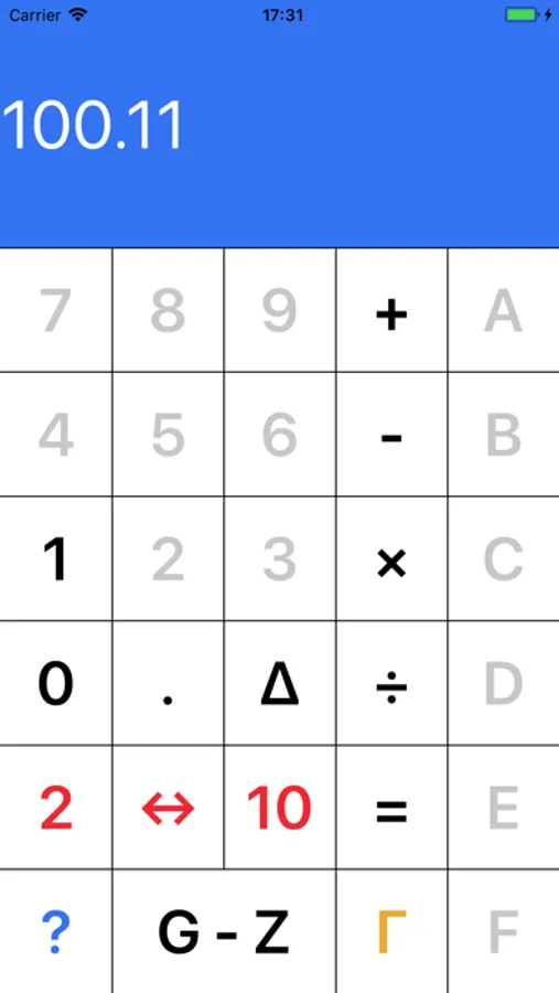 Through touching the red number you can easily select the desired number system. You can of course use the binary calculator as a normal calculator for decimal numbers. ;)