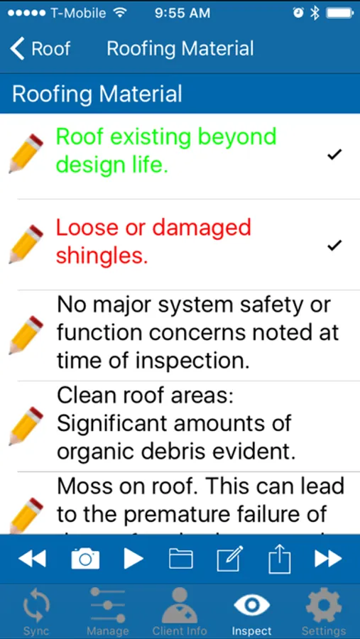 Collect all your inspection data on-site, take photos and videos, then annotate them with your device and instantly slot them into the report and use voice recognition or the keyboard to input data. Since you can download all your inspection templates from the desktop to your iPhone or iPad you have access to thousands of narratives in your residential (including TREC 7-6), Wind Mitigation, 4 Point, Commercial, Mold, Radon, Septic, Pool, Fire door, Accessibility (and more) templates!