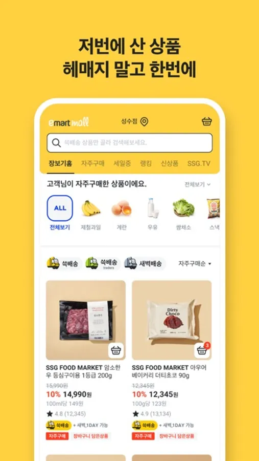 새로운 이마트몰에서는 트레이더스, 새벽배송 상품도 한 번에 볼 수 있고