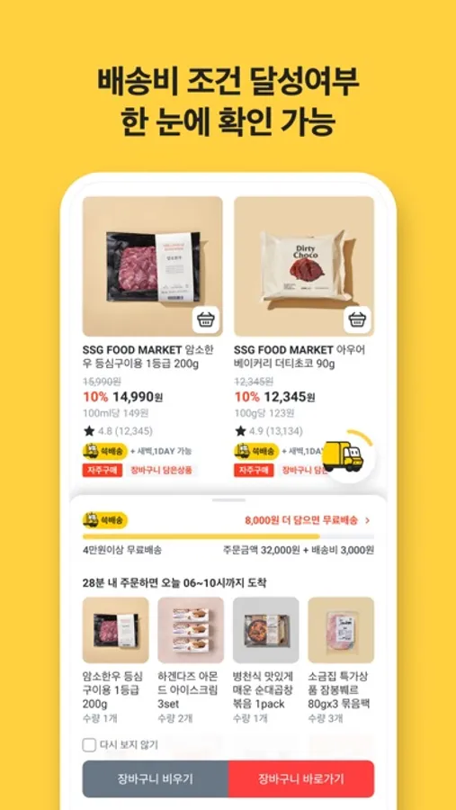 배송비 조건 달성여부도 한 눈에 확인 가능해요!