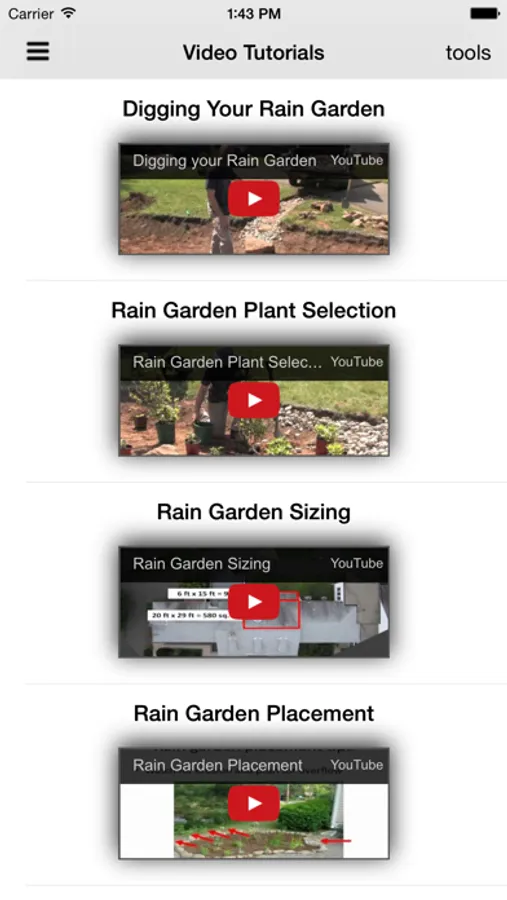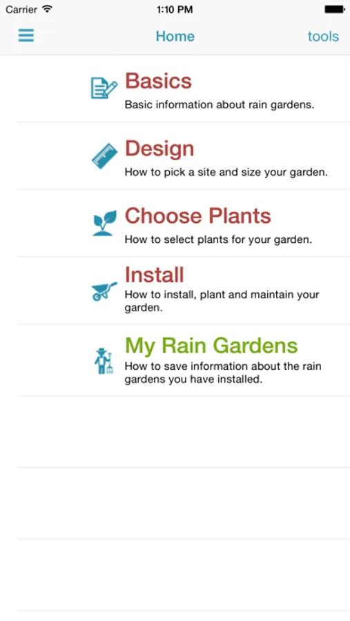 The App includes basic information about what rain gardens are and how they work; guidance on how to design and install them properly; and tips on maintaining your garden. The app includes several short video tutorials to help users with each step of the process.