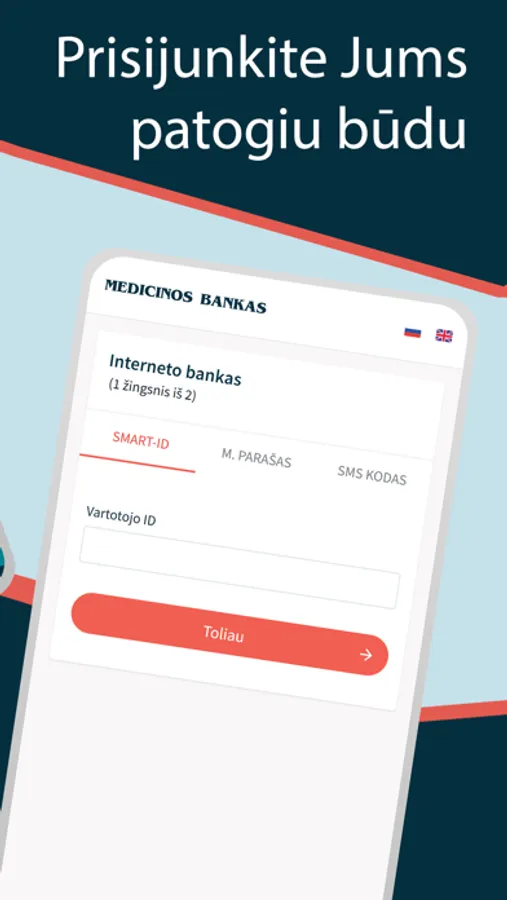 · Prisijungti patogiausiu pasirinktu būdu (Smart-ID, m. parašu ar SMS žinute gaunamu kodu);