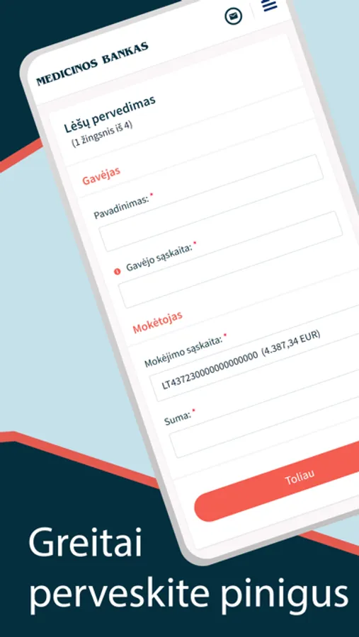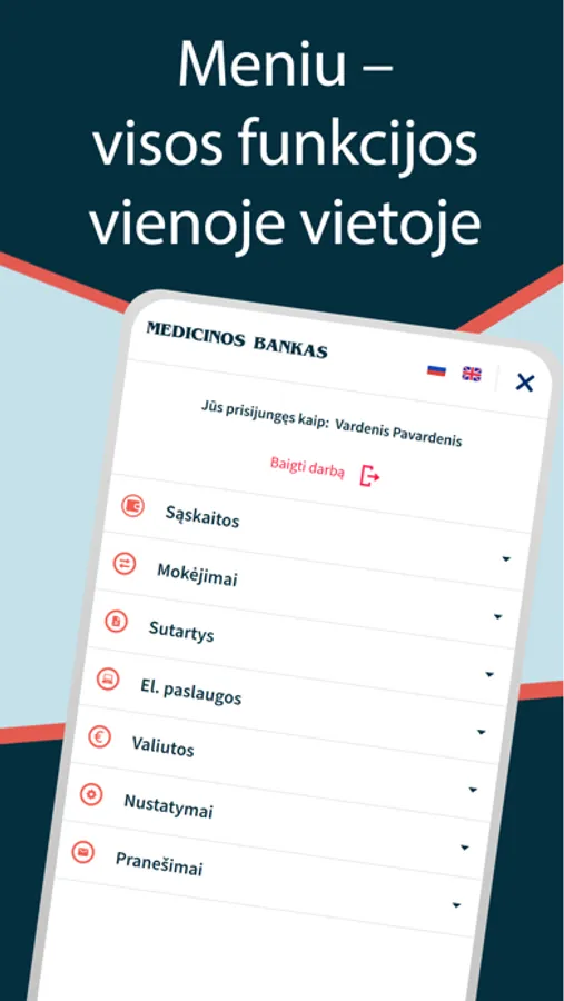 · Tikrinti sąskaitų likučius, planuoti išlaidas ir sekti įplaukas;