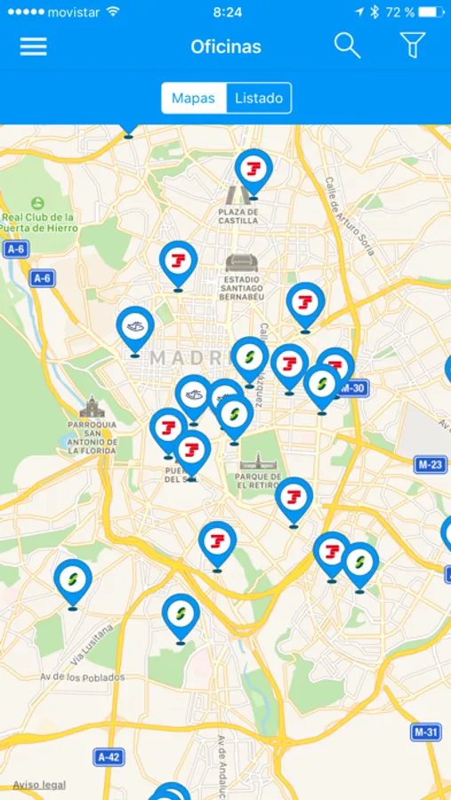 - Consultar las oficinas más cercanas a su ubicación actual.
