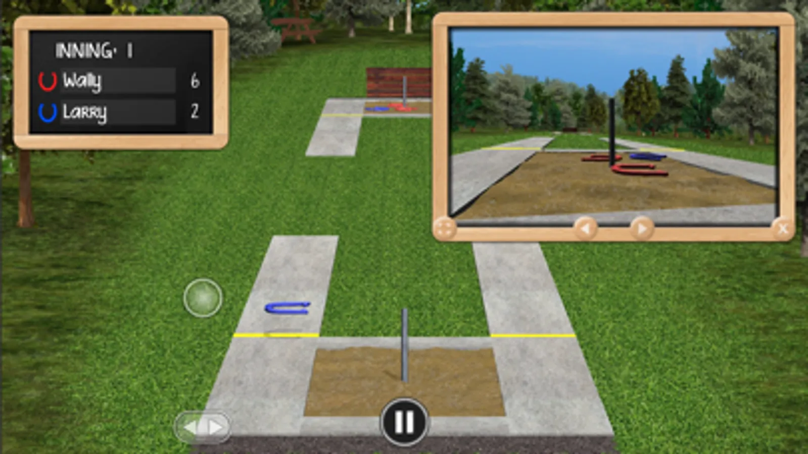 Horseshoes, a pastime enjoyed for generations by nobility and commoner alike, is fun for all. This is the real game of horseshoes. No flashing lights or special effects. Just a regulation game, played on a regulation court, in a regulation park, on a regulation summer day. Game play and physics are realistic in every way.