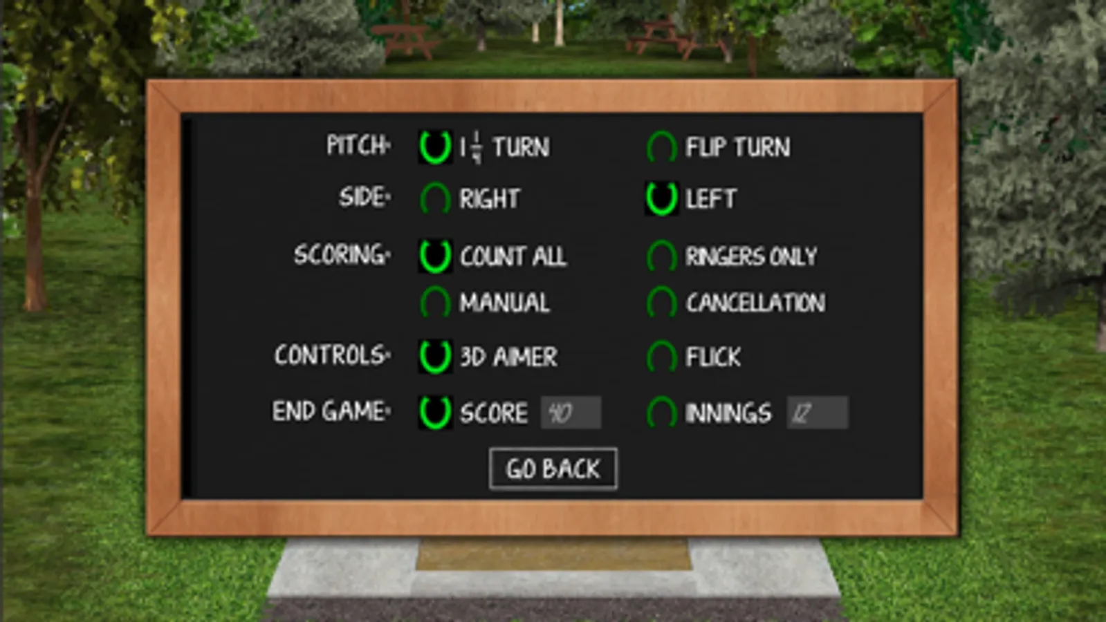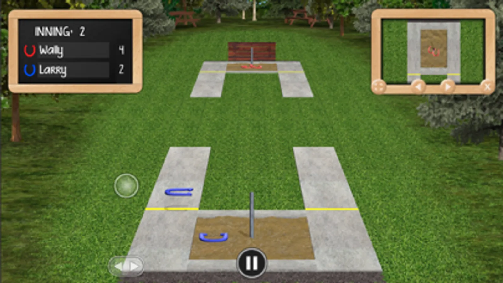 Play against another human or against one of three different computer opponents. Several scoring options are available. With automated scoring, you can play a standard game where “close” counts, or a tournament game where only ringers are scored. If you’re feeling ruthless, try cancellation scoring where only one player scores per inning. And if you’re feeling adventurous, you can even use manual scoring where anything goes, even “leaners.”