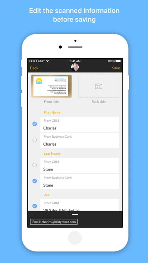 Sometimes lighting isn't ideal and not all your data gets added perfectly. Make quick edits by dragging boxes of suggested data onto the proper fields.