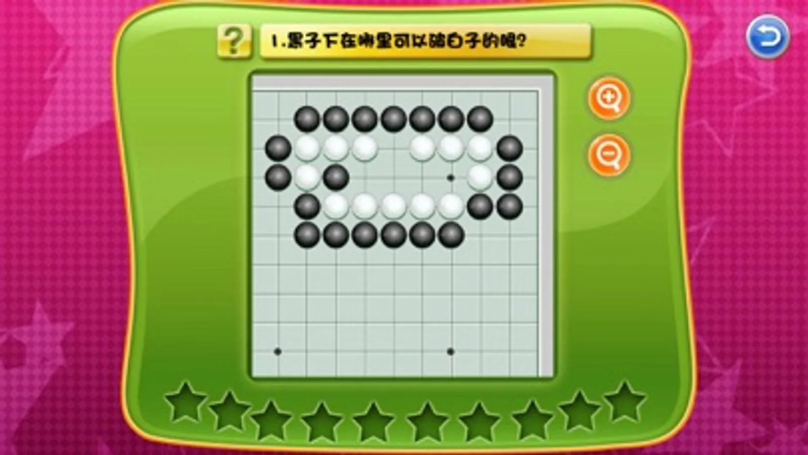 飞侠剑客:非常好的围棋启蒙课 寓教于乐 很适合大人小孩一起看 深入浅出 生动易懂 我和我我五岁的儿子很喜欢 已经学到第八课了 刚下载了第九课 本来是暑期想给他报围棋兴趣班 但自从看过了这个就觉得不需要了 比起实体课程物美价廉 且更易让这个年龄段的幼儿接受