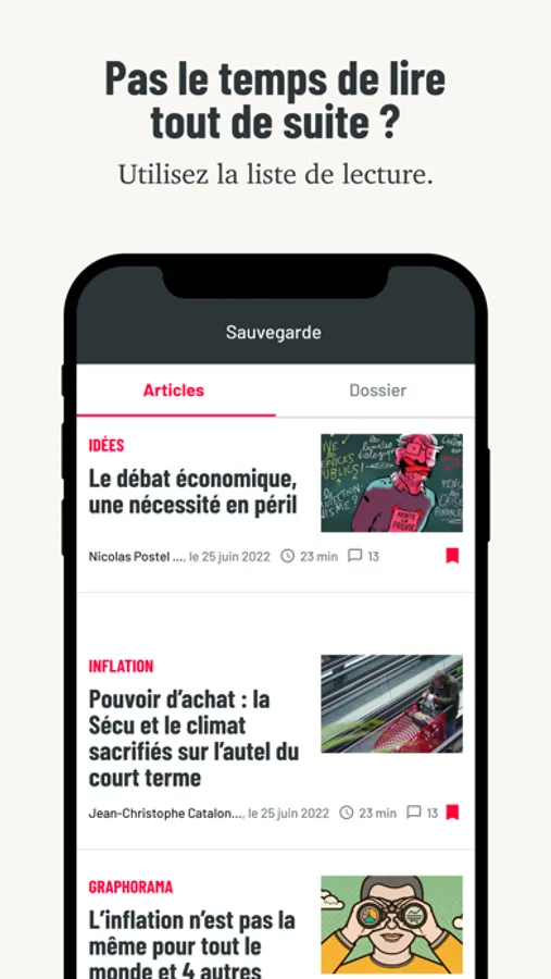 L'application a été entièrement repensée pour vous offrir un meilleur confort de lecture. Vous pourrez aussi désormais sauvegarder des articles à lire pour plus tard, lire en "dark mode", accéder à un moteur de recherche, etc