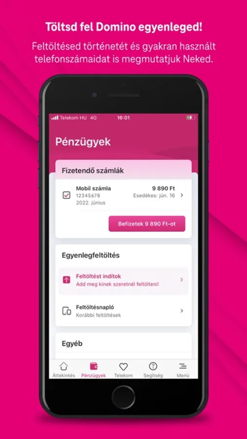 Lépj be és intézd ügyeidet egy helyen! Kérdezd le egyenlegeidet könnyedén, fizesd be számláidat csak pár kattintással akár egyben, akár külön-külön! Töltsd fel saját, családtagjaid vagy barátaid egyenlegét, nézd meg korábbi feltöltéseidet és gyakran használt telefonszámaidat.
