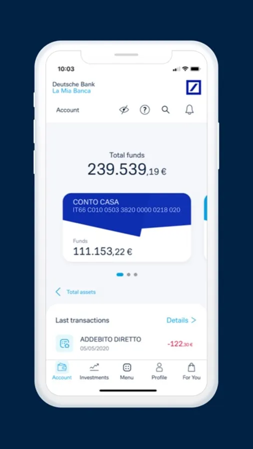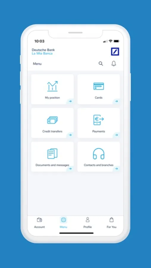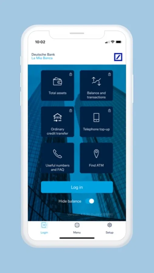 La Mia Banca is the official app of the Deutsche Bank Italia Group dedicated to account holders and holders of db contocarta, to manage their accounts and easily carry out transactions via smartphone. To log in, use the Deutsche Bank credentials (email and password) and token you have chosen.