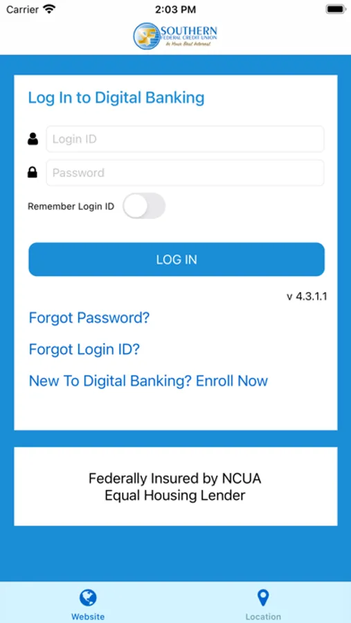 Southern FCU Mobile uses the same industry standard security technologies as our online banking. Simply use your Online Account Access Login and Password. If you don't yet have a Login or Password just visit us at southernfederalcu.org to enroll.