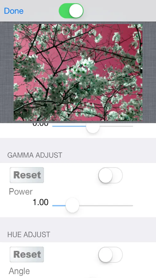 Serial Shut Camera support 15 of filters (and 13 filters are added on iOS 6). You can apply any filters in prevue detail panel. Parameter of each filter can be configured.