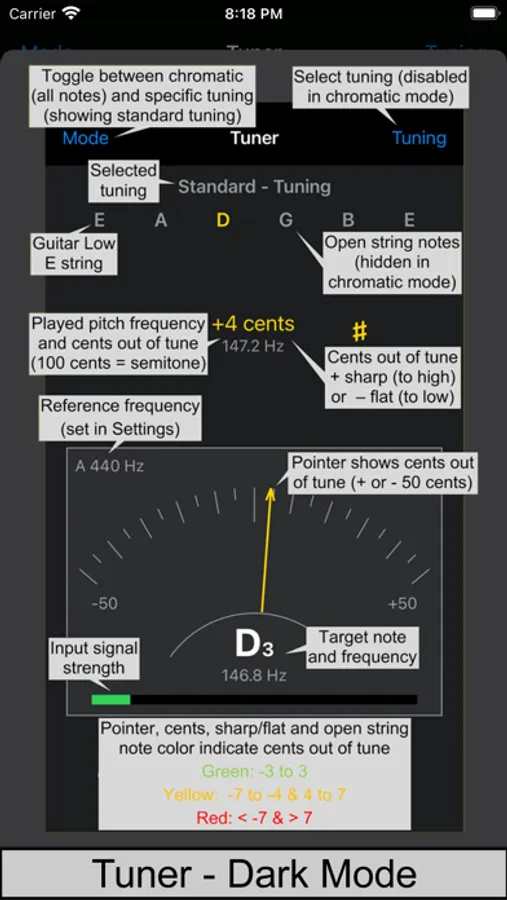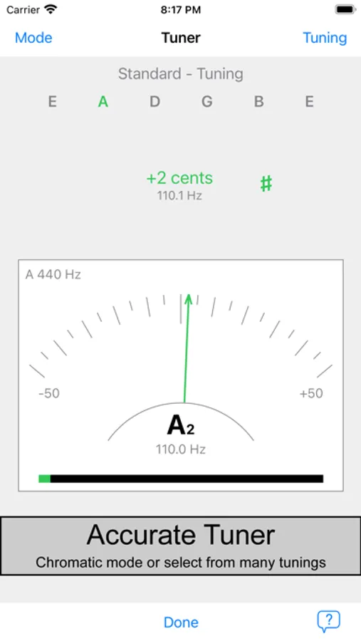 Use the tuner to accurately tune your guitar easily; use chromatic mode or select from tunings.