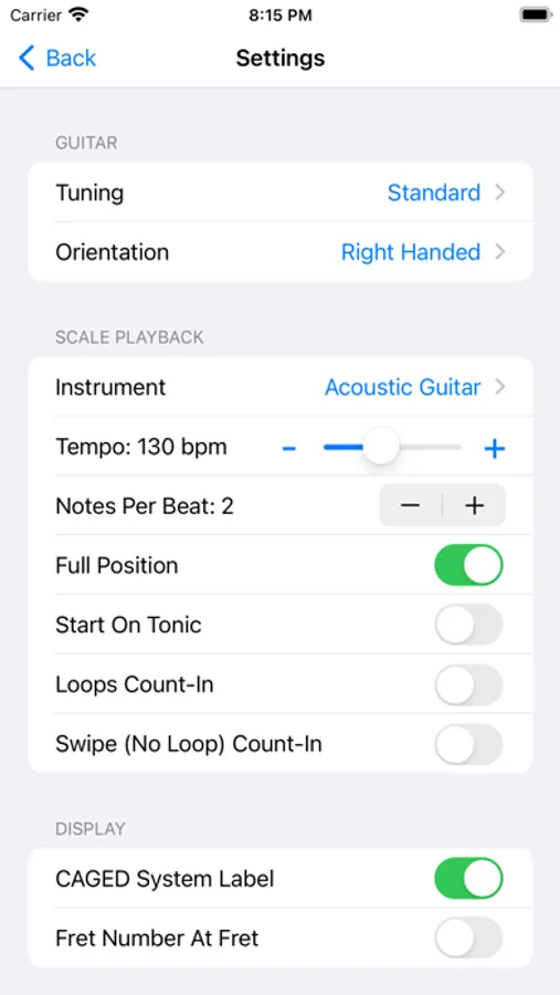 • Scale playback instruments : Guitar and Acoustic Guitar