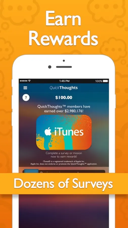 - QuickThoughts offers paid surveys from thousands of sources on hundreds of subjects. You’ll never run out of chances to earn iTunes gift card rewards, just for sharing your opinion with real sources that value your thoughts!
